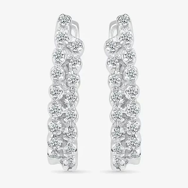 (G-H / Si2-I1) C-Hoop Womens 1/6 CT. T.W. Lab Grown White Diamond 10K Gold 16mm Hoop Earrings