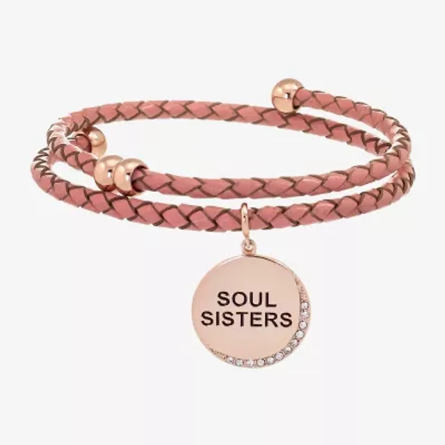 Sparkle Allure Pink Leather Coil Soul Sister Womens Cubic Zirconia 18K Gold Over Brass Wrap Bracelet