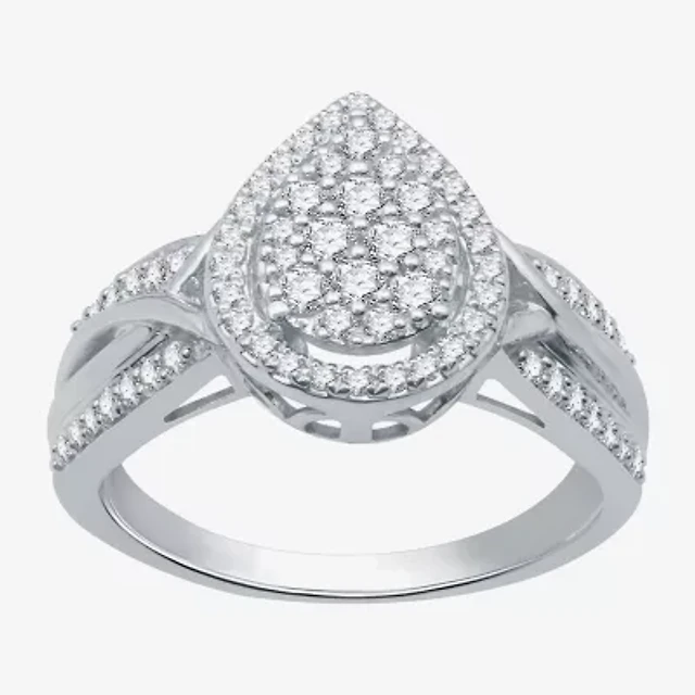 I Said Yes (H-I / I1) Womens 1/2 CT. T.W. Lab Grown White Diamond Sterling Silver Pear Side Stone Halo Engagement Ring