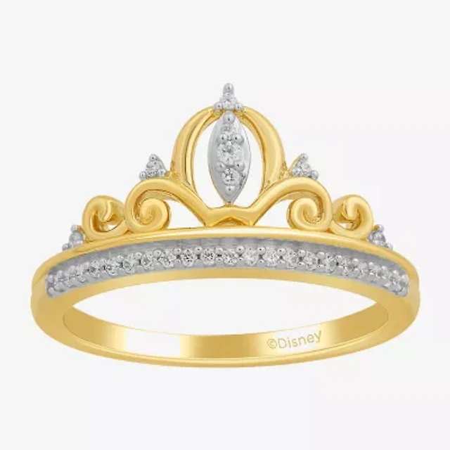 Enchanted Disney Fine Jewelry Womens 1/8 CT. T.W. Natural White Diamond 14K Gold Over Silver Sterling Crown Cinderella Princess Cocktail Ring