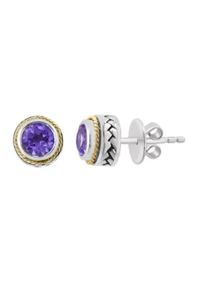 Sterling Silver/18K Yellow Gold Green Amethyst Earrings