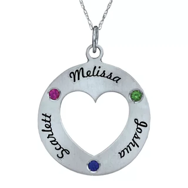 Personalized Simulated Birthstone Engraved Open Heart Pendant Necklace