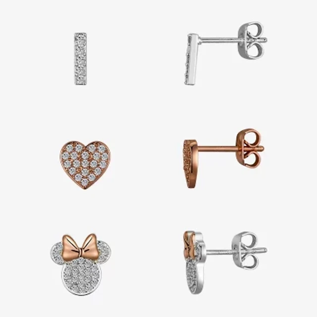 Disney Classics Stud Womens Cubic Zirconia Heart Minnie Mouse 3 Pair Earring Set