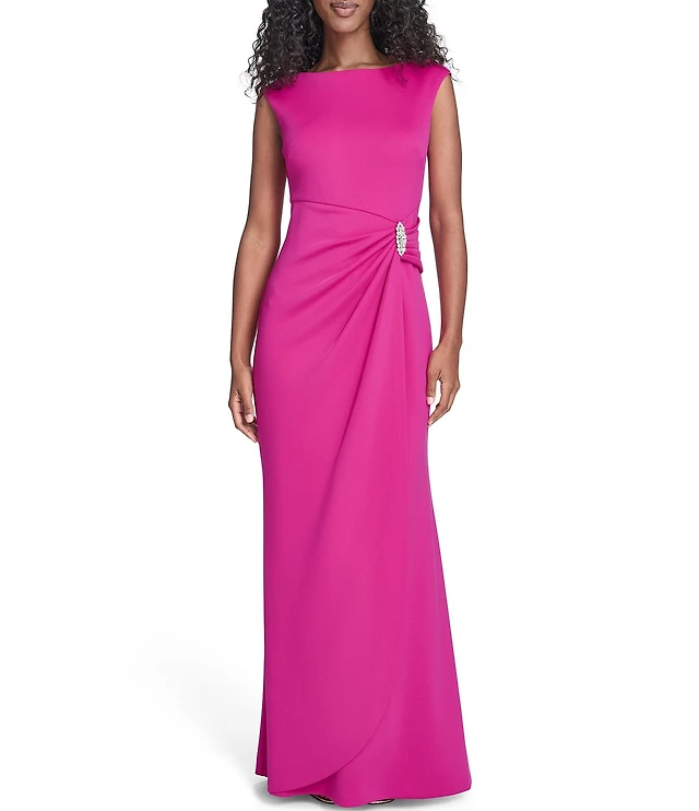 Donna Karan Satin V-Neck Sleeveless Hardware Twist Front Gown