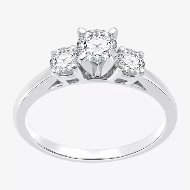 (G-H / Si1-Si2) Womens 1 3/8 CT. T.W. Lab Grown White Diamond 14K Gold Side Stone Engagement Ring