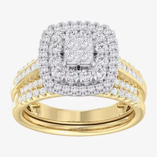 (G-H / Si1-Si2) Womens 1 CT. T.W. Lab Grown White Diamond 10K Gold Cushion Side Stone Bridal Set